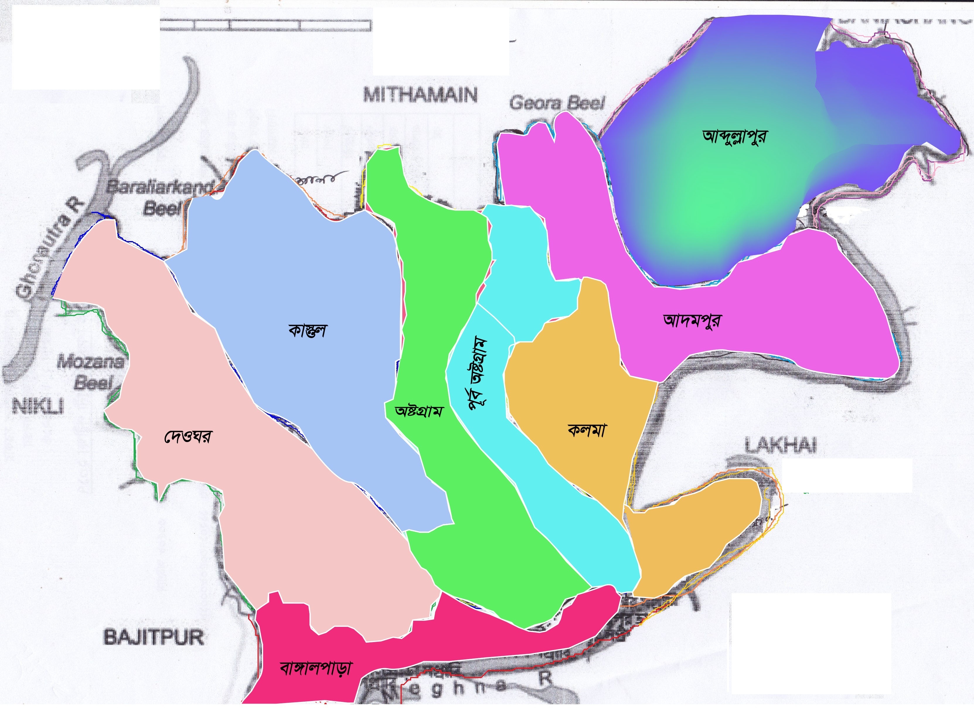 অষ্টগ্রাম পূর্বনাম আটগাঁও। জেম্স রেনেলের মানচিত্রে ‘‘আটগাঁও বলে কথিত। লোকায়ত নামের সংস্কৃতায়ন ঘটেছে যা ব্যুৎপত্তিগতভাবে লক্ষ্য করা যায়। এই পরিমার্জনটি আধুনিককালের ডঃ দীনেশ চন্দ্র সেনের ময়মনসিংহ লিটারেরী মানচিত্রে অষ্টগ্রাম নামটি উল্লেখিত আছে। এই মানচিত্র কোলকাতা বিশ্ববিদ্যালয় হতে ১৯২৩ সালে প্রকাশিত। কবে থেকে আটগাঁও অষ্টগ্রাম হয়ে গেছে তা সঠিকভাবে বলা মুশকিল। কিন্তু লৌকিকভাবে আটগাঁও কথাটির প্রচলন এখনও আছে। কোন হিন্দু রাজা বা জমিদারের আমলে ‘‘আটগাঁও’’ অষ্টগ্রামে পরিবর্তিত হয় বলে মনে হয়।